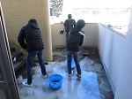 6年生は、外階段をきれいにしていました。
