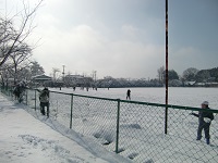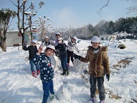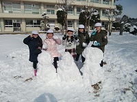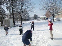 校庭は、雪遊びを楽しむ子どもたちでいっぱいです。