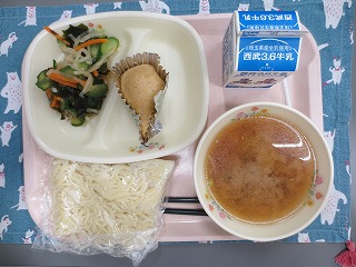 今日は給食の時間の前から、ごま味噌ラーメンの味噌のよい香りが学校中に漂っていました(*^^*)ラーメンのスープと麺がよく合い、とてもおいしくいただきました!!