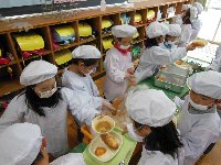 給食の配膳は、だんだんと自分たちでできるようになってきました。自分の当番の仕事に責任をもち、一生懸命取り組んでいます。