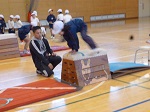 2時間目、2年生は体育で跳び箱を使った運動の学習でした。