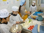 5,6時間目、5年生は家庭科で調理実習をしました。