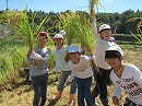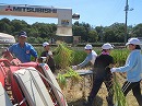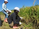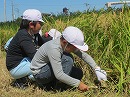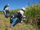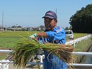 刈り取った稲はそのまま中村さんが準備したコンバインで脱穀されます