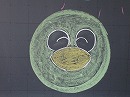 コバトンをかたどった新聞紙を大きく広げ田んぼへ浮かべます