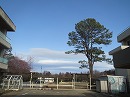 校庭には桃の花が