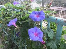 5年生の教室の前には今日も元気に琉球アサガオが咲きます
