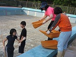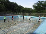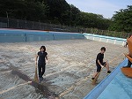職員がプール掃除