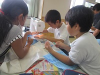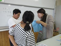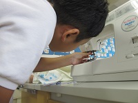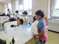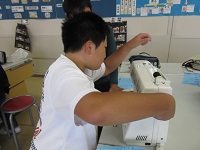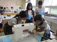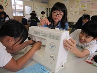 5年生がミシン縫いにチャレンジしています。
