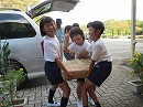 11袋に分けられた「ふっかちゃん米」を32人の元気で優しい子供たちが