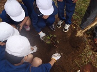 2年生が愛情込めて育てた『さつまいも』を今日の第2校時に掘りました。夏場は、草に負けそうなさつまいもでしたが、一生懸命に掘って『さつまいも』を掘り出しました。担任の先生が用意したビニール袋1枚に軽く収まる程度の収穫量でしたが、子どもたちは大小さまざまな大きさのさつまいもを手に収穫の喜びを味わっていました。興味を持ったのは、さつまいもだけでなく、さつまいもの茎の部分を縄跳びの縄に見立て、ピョンピョン跳んで楽しんでいました。子どもの創造力には驚きです。