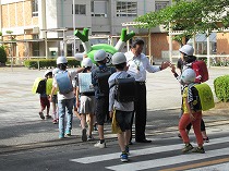 市長さんと元気に「おはよう」のあいさつをしながら、ハイタッチをして門をくぐりました。