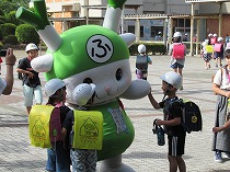 子どもたちはふっかちゃんと一時親しんだ後、嬉しそうに昇降口へ向かいました。