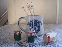 昨日までは、マトリョーシュカを二種類と熊本の郷土玩具『おばけの金太』をおいていましたが、今日からは、棒を持ってクルクル回すとかえるとせみの鳴き声がする玩具を置きました。