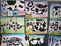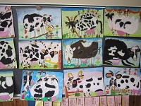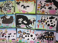 牛の絵が完成しました。どの子も大きな牛を見学した感動が表現されています。明るく力強く特徴をしっかりとらえた素晴らしい作品になりました。