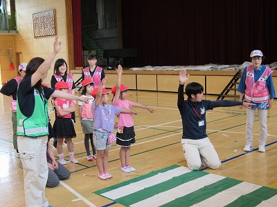 手に手つないだわを広げ