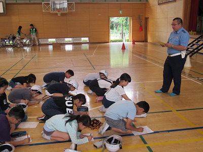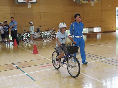 4年生は、自転車の点検、実技、筆記試験を行い、免許をいただきました。