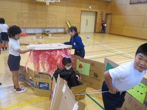 友達と協力しながら遊具の作成