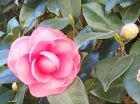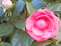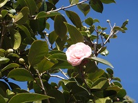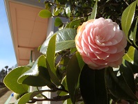 学校では、穏やかな日差しをうけ、椿の花がきれいに咲いています。
