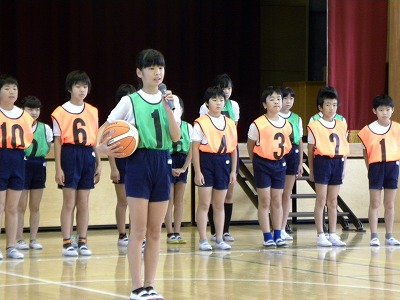 今朝、4年生が中心になって「親善バスケ大会応援集会」が行われました。
