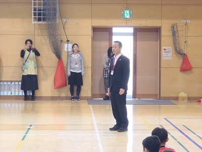 全校の児童がエールを送りました。校長先生から励ましの言葉がありました。