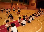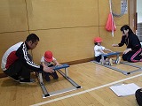体育館では、上体起こし、長座体前屈、反復横とび、立ち幅とびを行います。