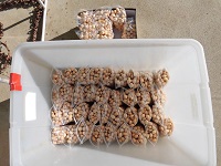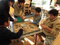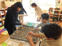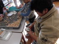 よく干されたぎんなんをことり学級のみなさんが袋詰めし