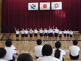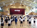 「5年生の親善球技大会」に向けて、全校で応援集会が行われました。