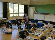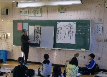 今月から書きぞめ練習が始まりました。授業には、学校応えん団の菊池先生にもご協力をいただいております。5年生は「友と歩く」と書きます。1回目は、一つ一つの文字のポイントや姿勢などを教えていただきました。菊池先生のご来校予定はあと3回。今後、子どもたちの字がどう上達していくかが楽しみです。