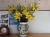 職員玄関には立派なユリが飾られています