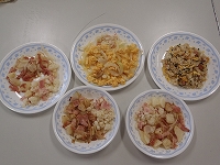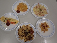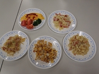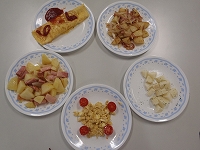 本日、家庭科調理実習を行いました。「1食分の献立を考えよう。」という単元で、それぞれが考えた主菜の調理を行いました。粉ふきいも、ジャーマンポテト、オムレツ、チャーハン、野菜のベーコン巻などいろいろな種類がテーブルに並びました。やけど等することなく、安全に行うことができ、回を重ねるごとに、子供たちの手際もよくなってきました。家庭でも実践できるといいですね。