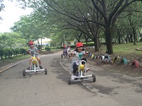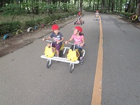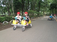 6月21日、1年生は生活科の学習でサングリーンパークに行ってきました。仲良く譲り合って思い思いの自転車に乗り、汗びっしょりになりました。