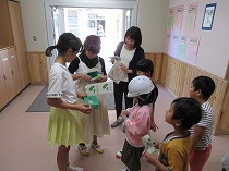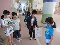 朝、登校したら、緑の羽根募金で、環境福祉委員会のお兄さんやお姉さんが昇降口に立って声掛けしていました。募金をして、緑色の羽を嬉しそうに持って帰る子がたくさんいました。