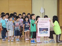 本日は児童集会「いじめゼロ集会」が行われました。代表委員会の人が司会をし、各クラス声を合わせてクラスのいじめゼロのスローガンを発表しました。発表で用いた宣言の紙は、みんなの見えるところに掲示してあります。