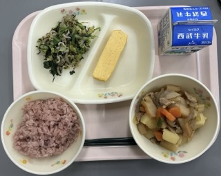赤飯・肉じゃが・厚焼き卵・磯の香あえ・牛乳