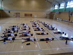 走り終わった後、体育館でストレッチをしながら、体を休めました。