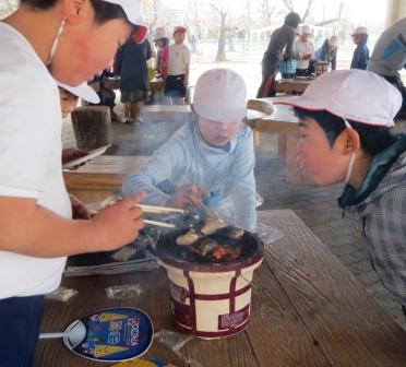 風が強い中でしたが どの班も無事に火おこし成功♪