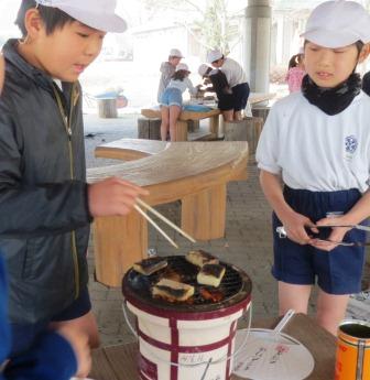 本日 3,4校時に社会科の学習として七輪体験を行いました