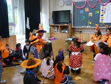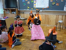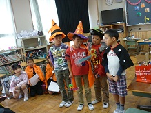 本日5時間目、2年1組の教室でハロウィンパーティーが開かれました。