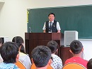 参加者を代表して実行委員長が力強く林間学校での目当てを発表