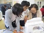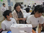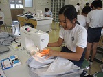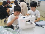 6年生が家庭科の授業で、ミシンを使ってエプロンを作りました。