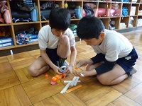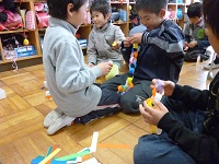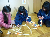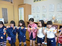 今、2年生の子供たちは、6年生の卒業をお祝いするため、折り紙で輪飾りを