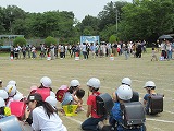 引き渡し訓練では、学年ごとに並んだ保護者の向かい側に子どもたちが並び、担任の先生の確認で引き渡しを行いました。迎えに来てくれたお家の人の顔を見て、どの子も嬉しそうでしたよ!絵文字:笑顔