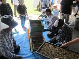 学校応援団の方々にお世話になり、もみふりを行いました。初めて見る機械に子供たちは興味津々で、積極的に取り組んでいました。グループで協力して、手順よくもち米や色米をまくことができ、田んぼアートに向けてさらに気持ちが高まりました。