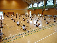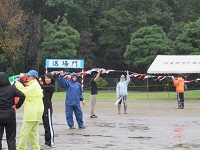 あいにくの雨でしたが、各学年、体育館を使っての最終練習を行っていました。また、放課後はPTA役員の方にもお手伝いいただいてテント張りや万国旗張りなどを行いました。