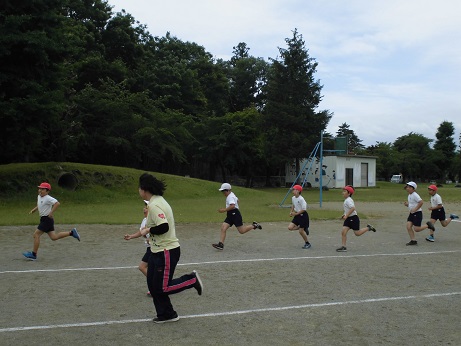 準備運動で南っ子体操をしてから、小トラックと大トラックに分かれて、全力走をしました。