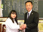「がんばってください。」という校長先生のことばと握手で