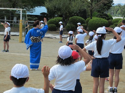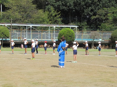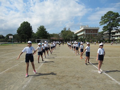 運動会を4日後に控えて、重忠節の練習を校庭で行いました。