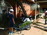 学年ごとに分かれ、学校のいろいろな場所の雑草を抜きました。
