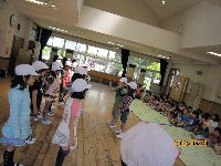 右の写真は、清風苑で歌や手遊びをしました。お年寄りの方が手拍子をしてくれました。とても喜んでくれました。
