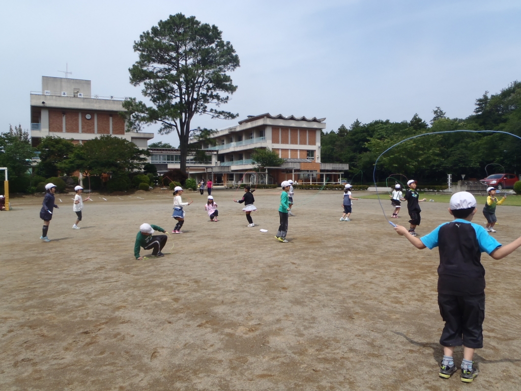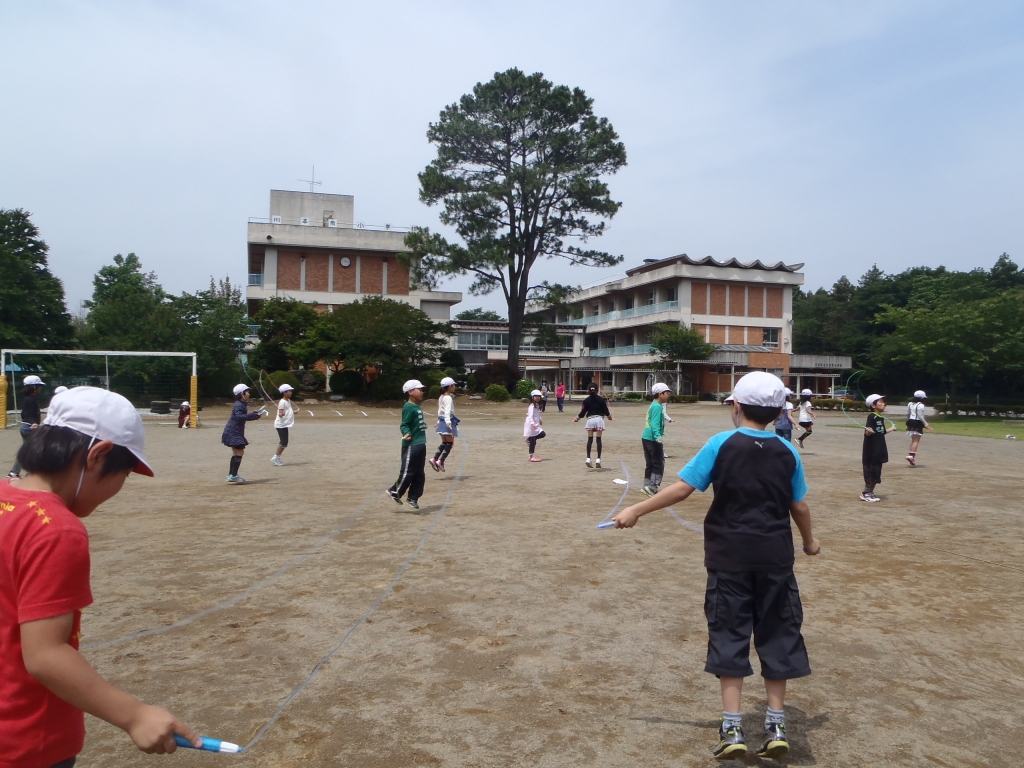 今日は、業間運動で短なわとびを行いました。3分間の前とびや、二重とび、あやとびなどチャレンジしました。子どもたちは一生懸命取り組んでいました。中には3分間一度も引っかからずにとんでいる子どもたちが何人もいてびっくりしました。みんななわとび上手になれるようにがんばろう!